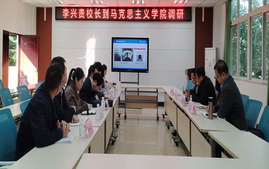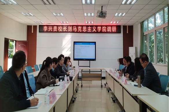 12月12日上午,校党委副书记、校长李兴贵带队到马克思主义学院进行调研指导工作,学校党政办、教务处、研究生处相关负责人陪同。马克思主义学院领导班子成员、科室负责人、教师代表参加调研活动。